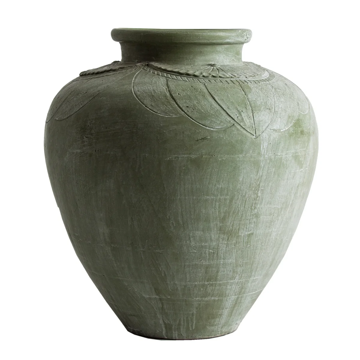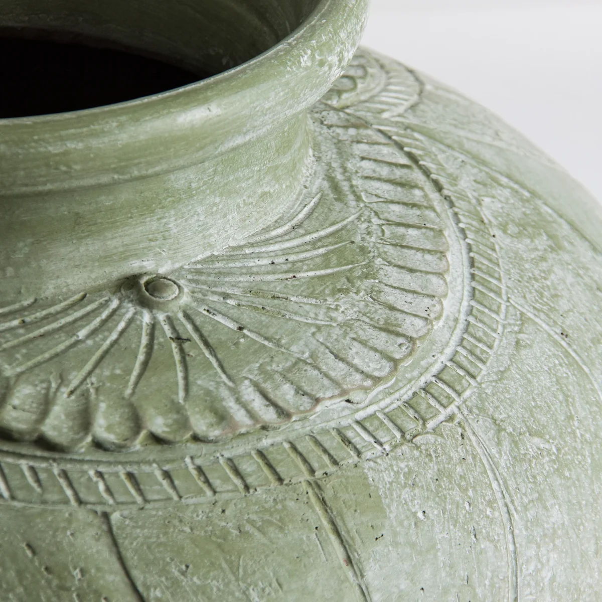 Ánfora llitia, en color verde, de estilo contemporáneo. Fabricado en terracota.