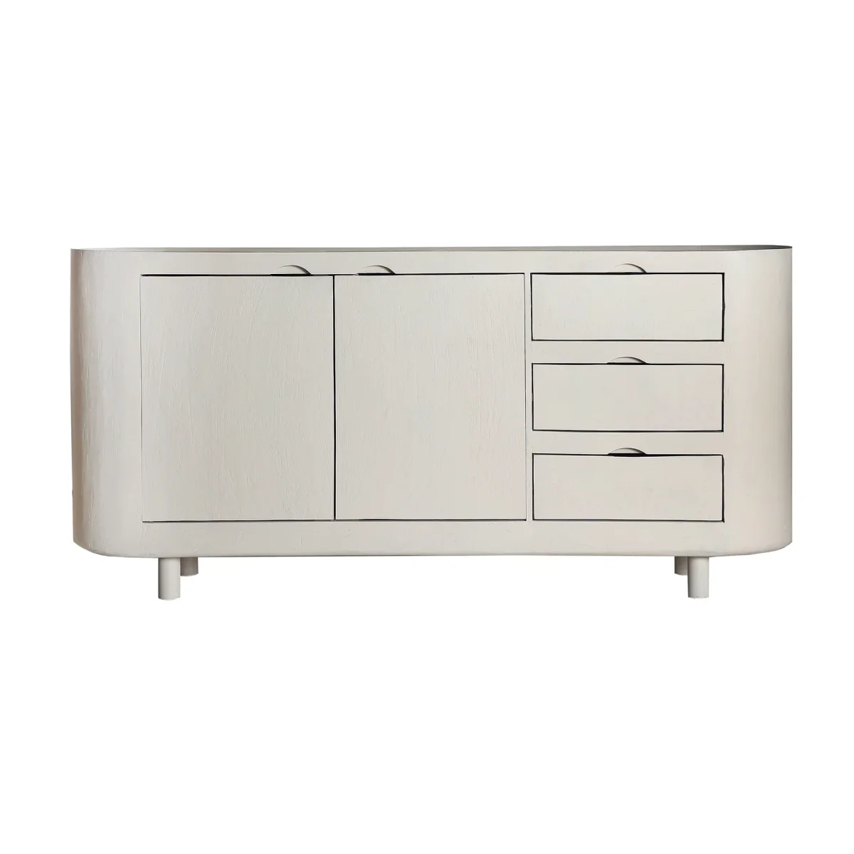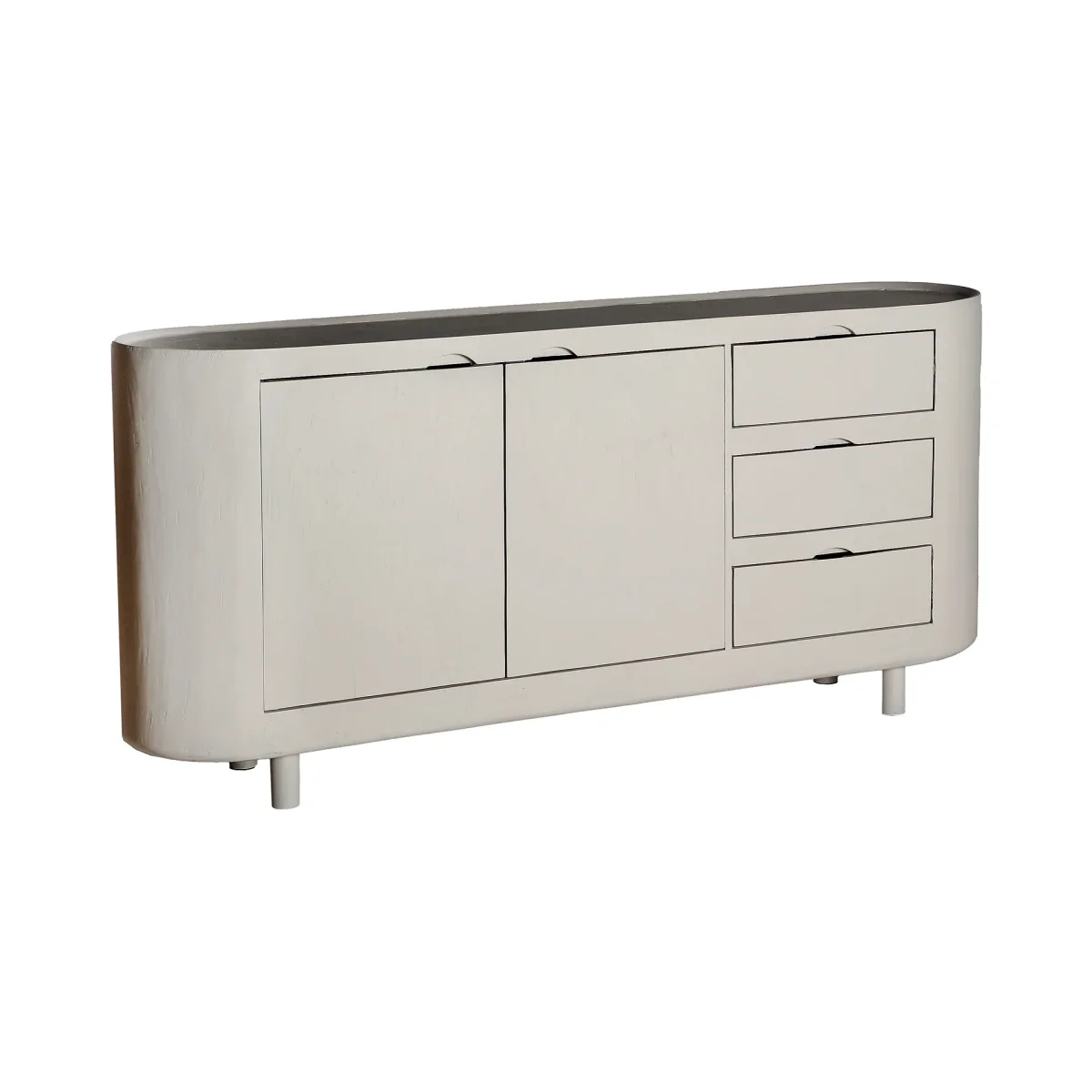 Aparador Rectangular Halsua, En Color Blanco Roto, De Estilo Contemporáneo. Fabricado En Madera De Mango, Combinado Con Madera Dm. Producto Desmontable.