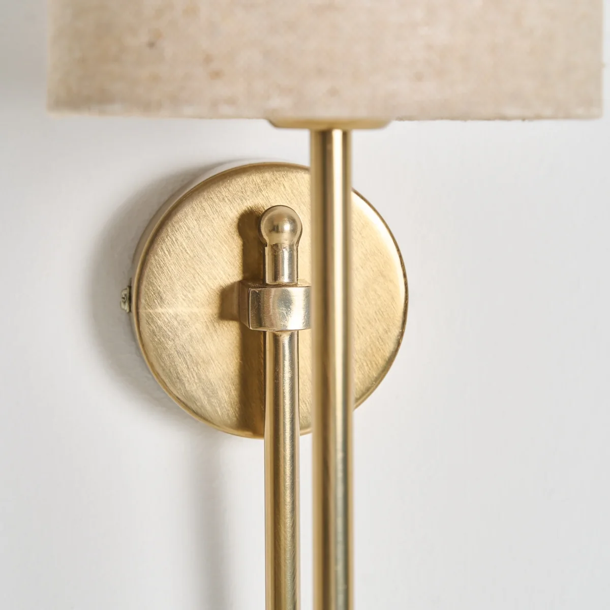 Imagina iluminar tus espacios con el encanto atemporal del Aplique Marsac, una pieza que transforma cualquier rincón en un refugio de estilo. Fabricado con un esmerado diseño en hierro dorado y poliéster beige, el Aplique Marsac refleja la calidad y el cuidado en cada detalle. Su estructura desmontable permite una fácil instalación y mantenimiento, asegurando que su belleza perdure en el tiempo.