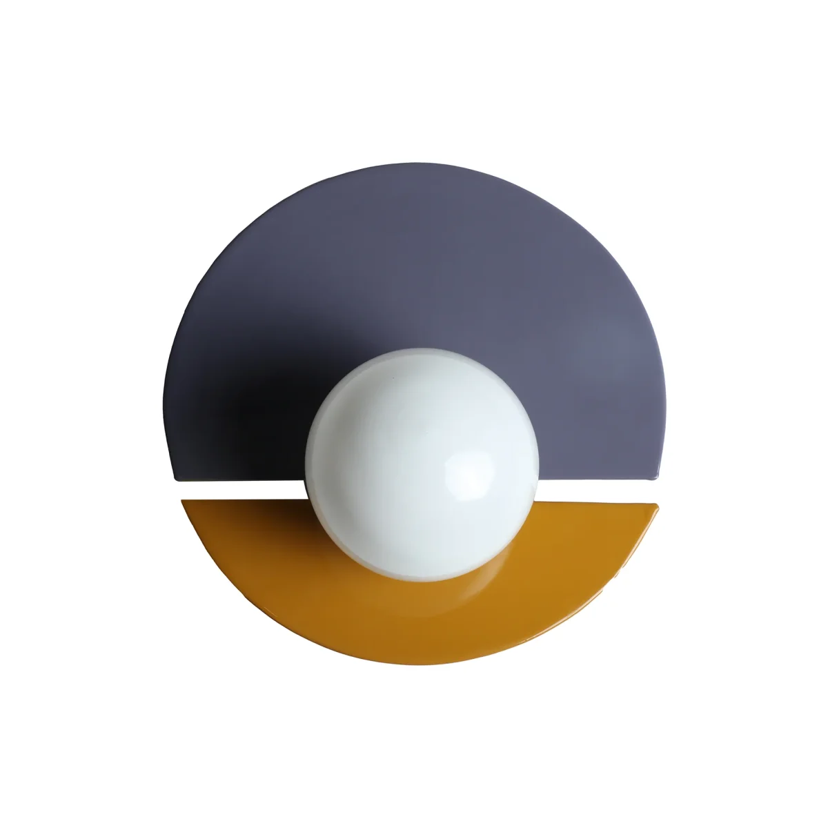 Aplique Niza de estilo moderno, fabricado en hierro en color oro, combinado con vidrio en color azul petroleo en color ocre.