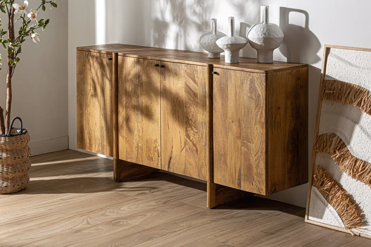 Aparador Rectangular Koigi, En Color Marrón, De Estilo Nórdico. Fabricado En Madera De Mango. Producto Desmontable.