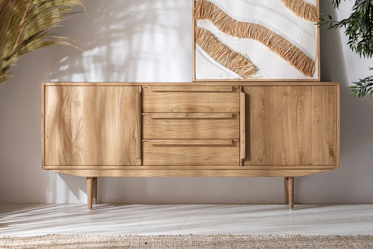 Aparador Rectangular Nyry, En Color Marrón, De Estilo Nórdico. Fabricado En Madera Mindi. Producto Desmontable.