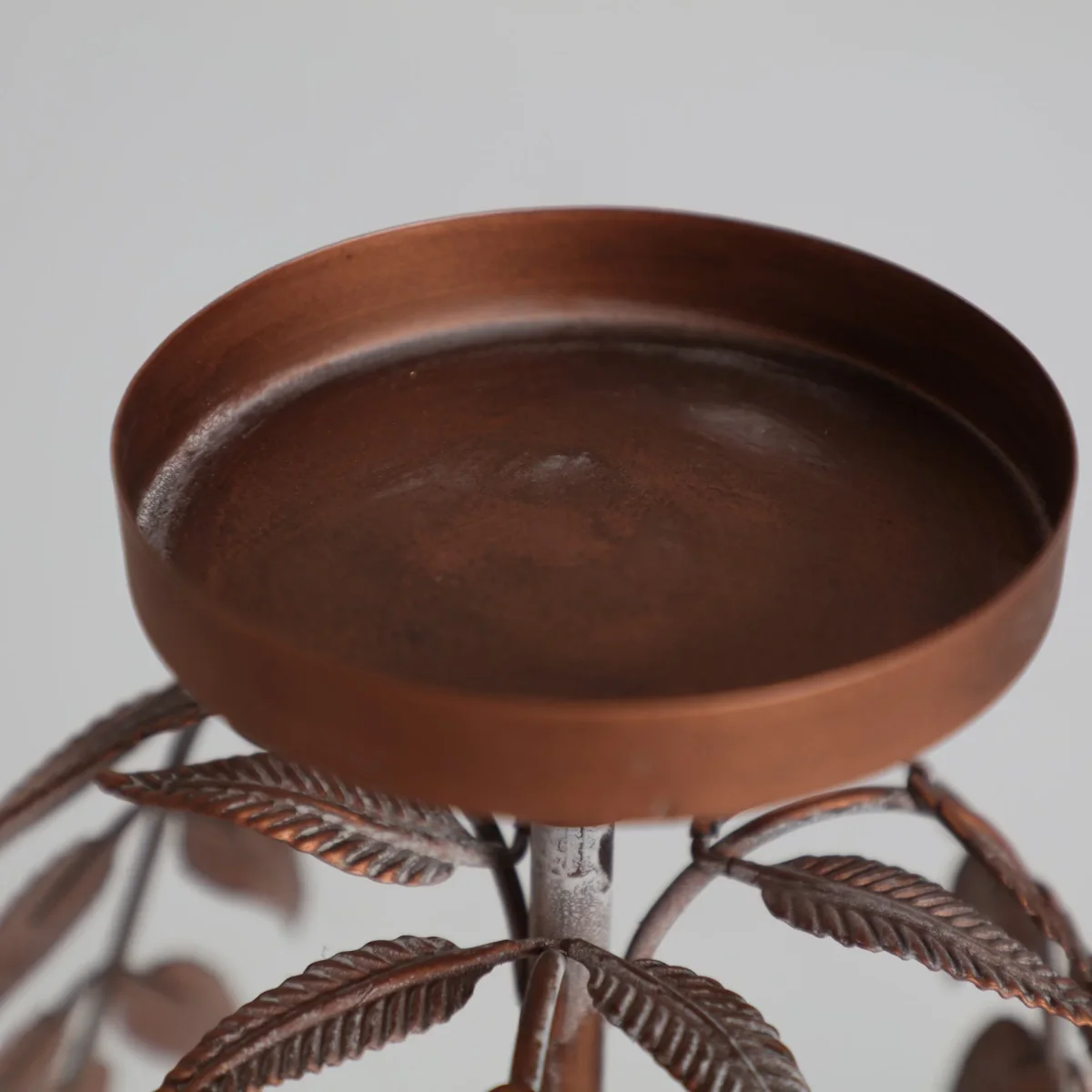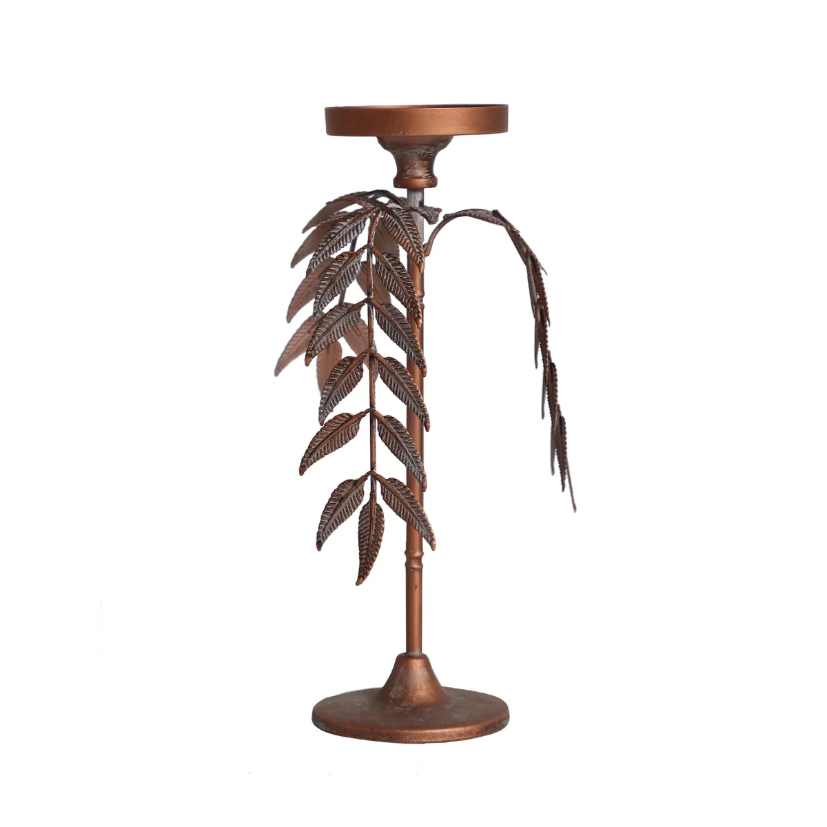 Candelabro Redondo Palmera Lucerna, En Color Cobre, De Estilo Art Deco. Fabricado En Hierro.