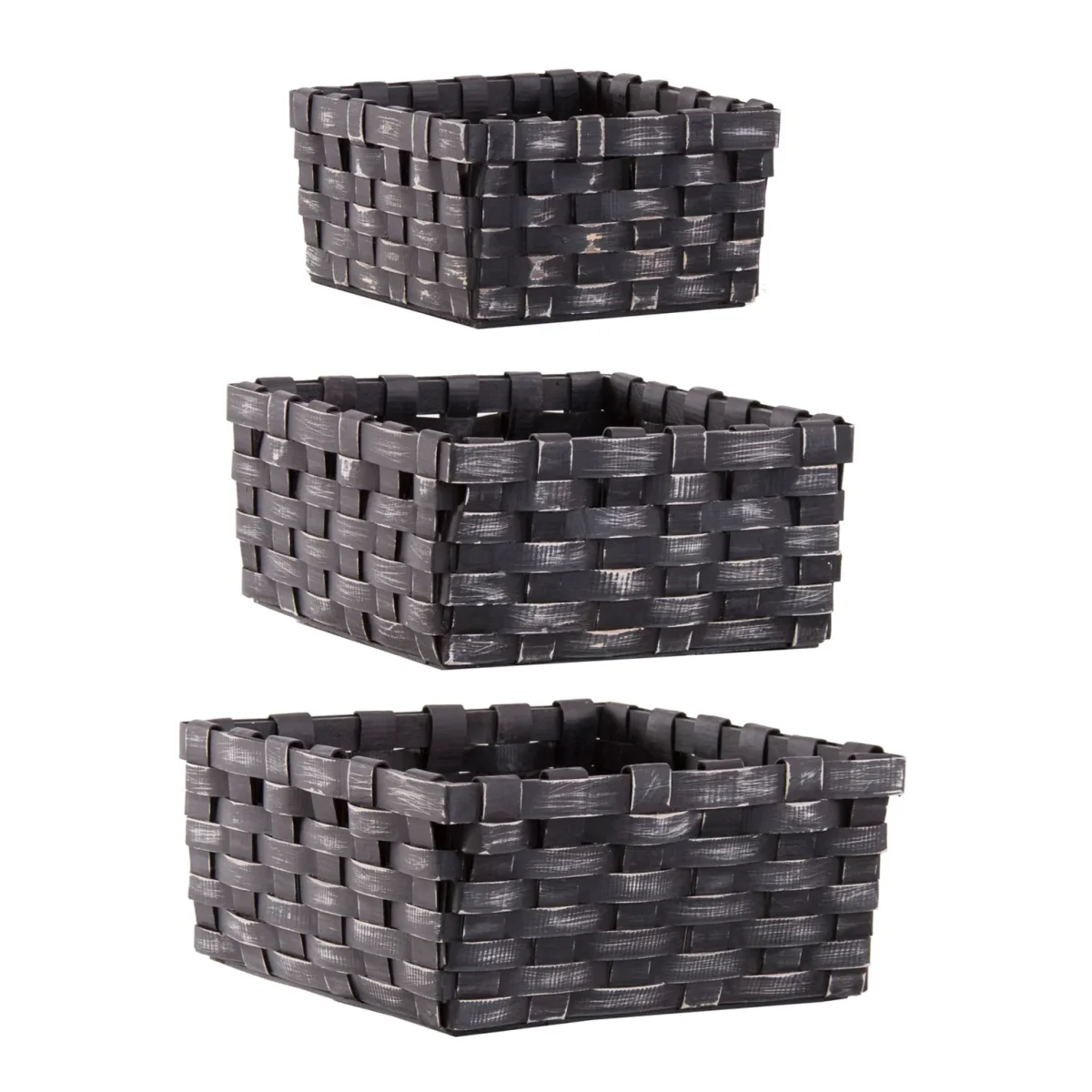Cesta j/3, en color negro decapado, de estilo provenzal. Fabricado en mimbre.