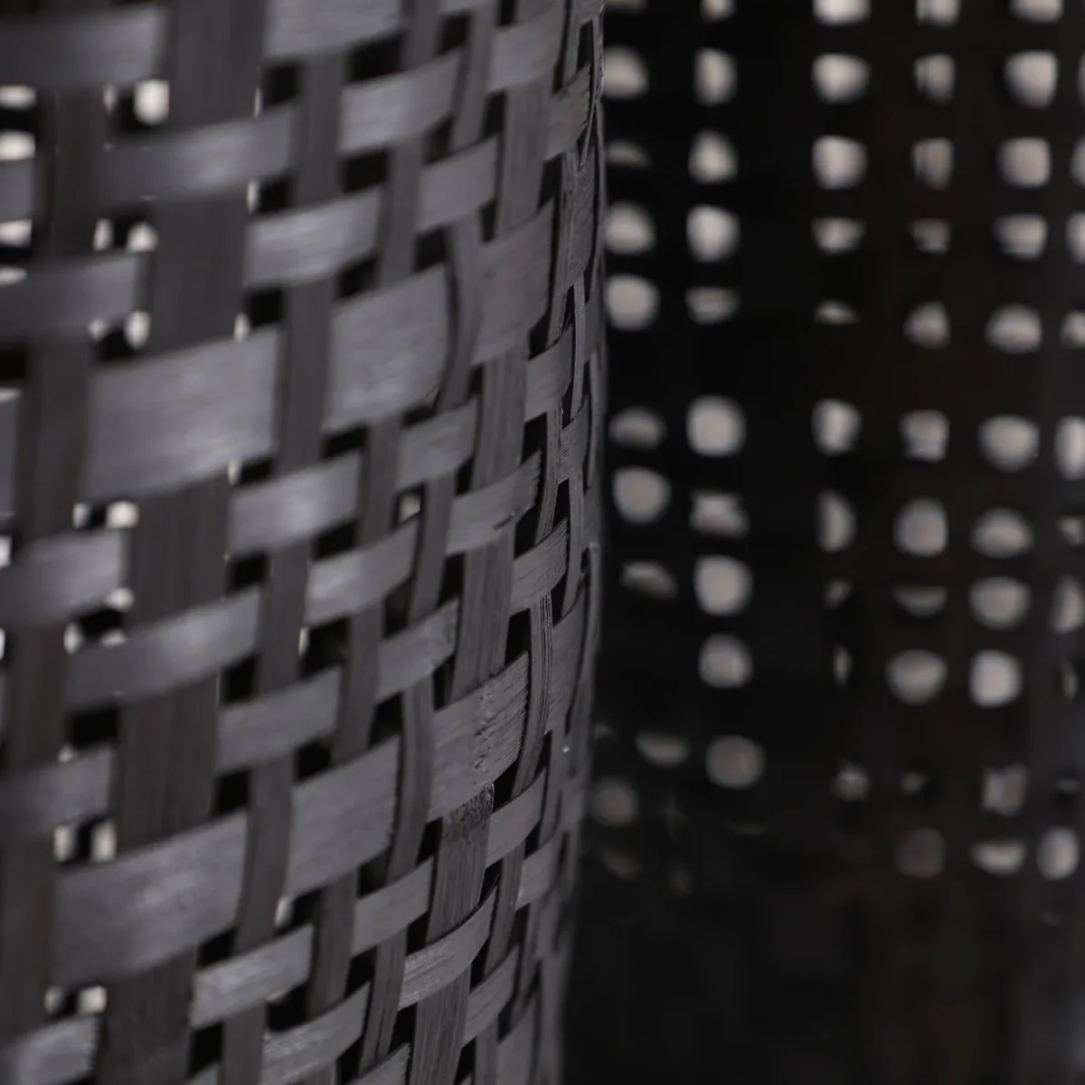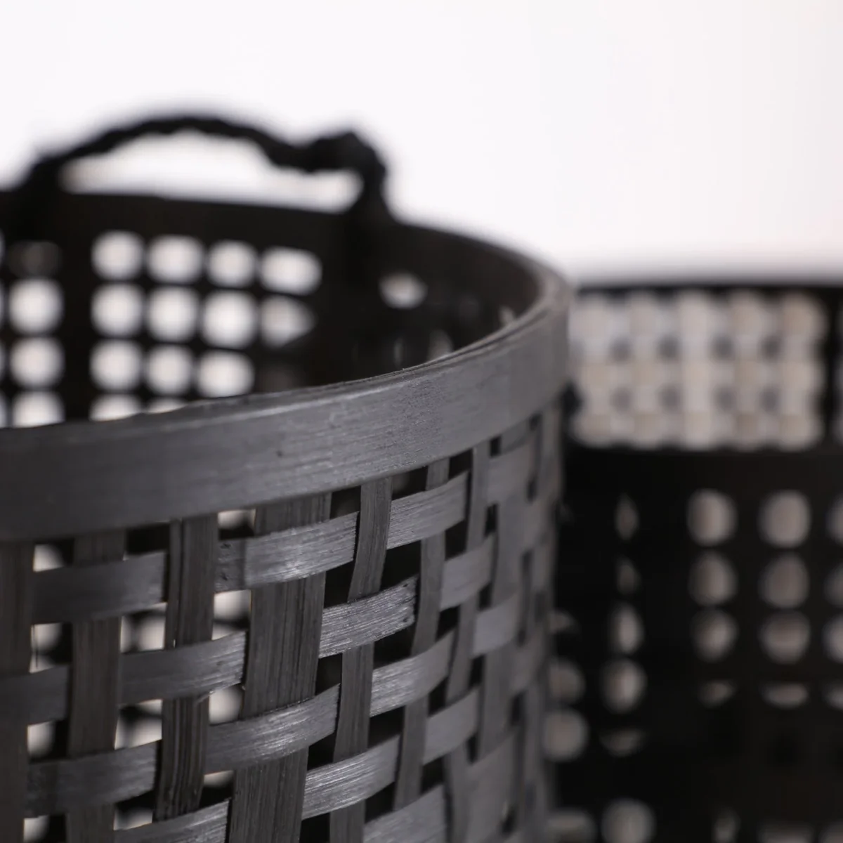 Cesto J/2 Cuadrada Kaleshe, En Color Negro, De Estilo Boho. Fabricado En Bambú.