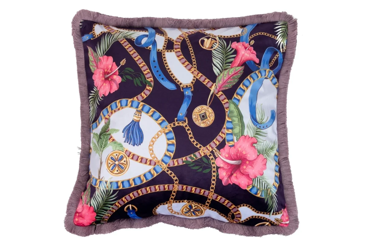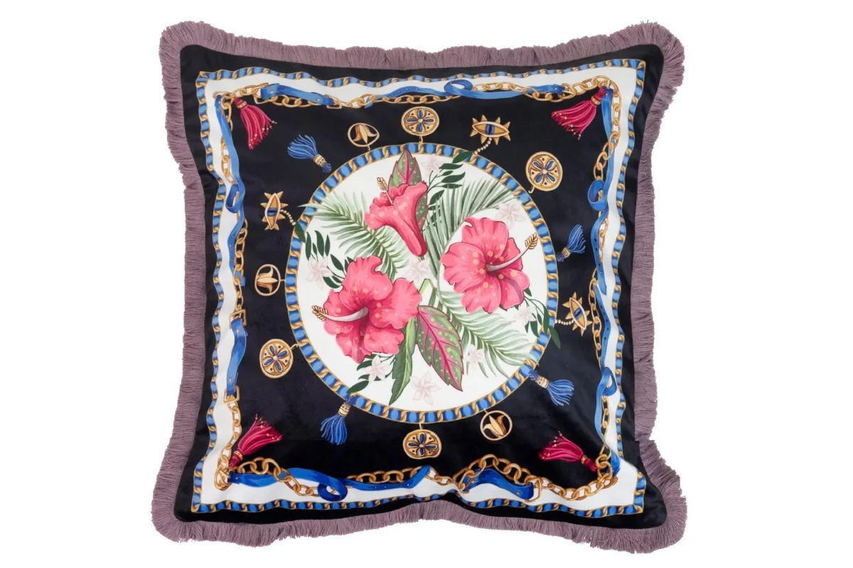 Cojin Velvet Relleno Plumas Con Flecos 45X13X45 Cm