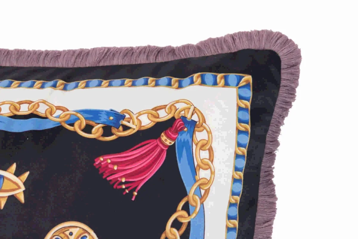 Cojin Velvet Relleno Plumas Con Flecos 60X13X60 Cm