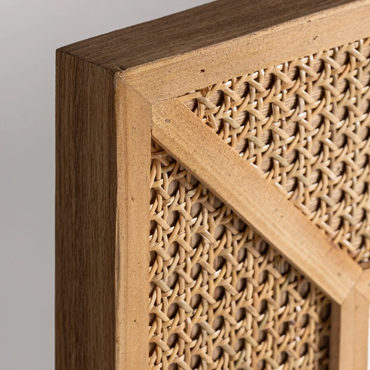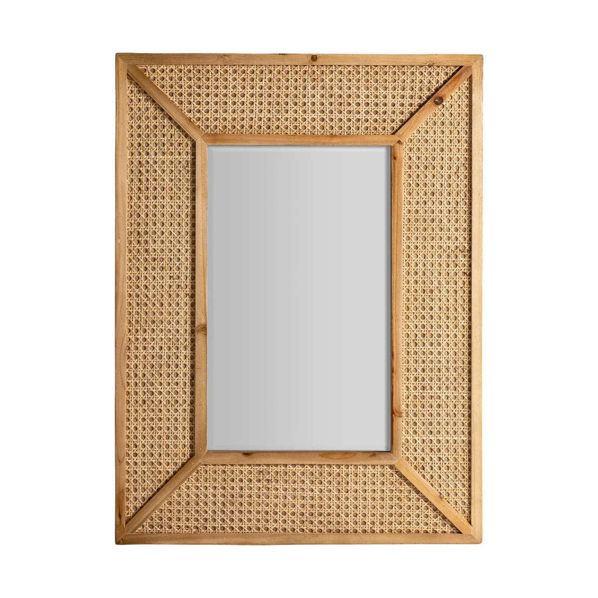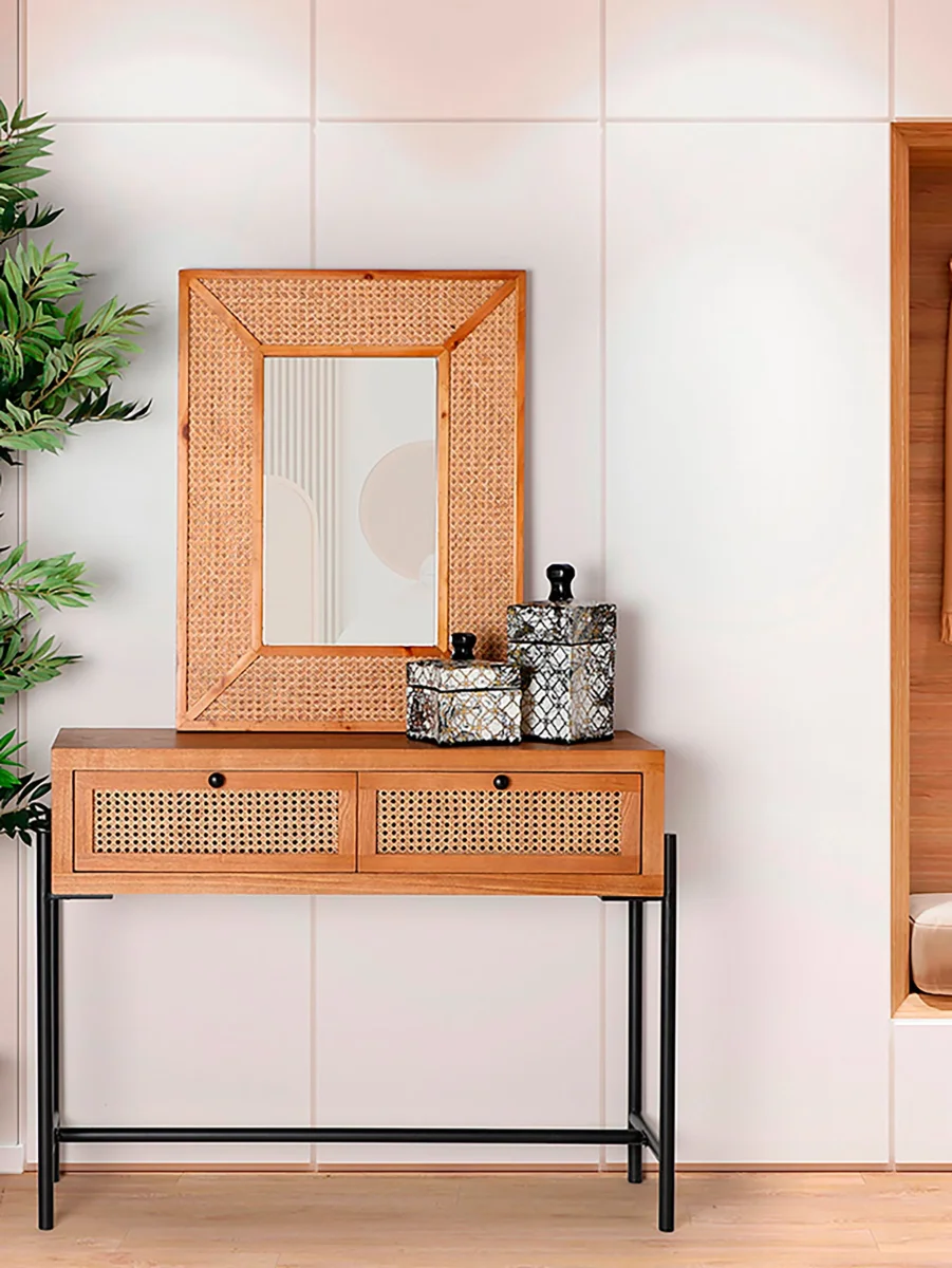 Espejo Rectangular Zetel, En Color Marrón, De Estilo Contemporáneo. Fabricado En Hierro, Combinado Con Ratán Y Madera Dm.