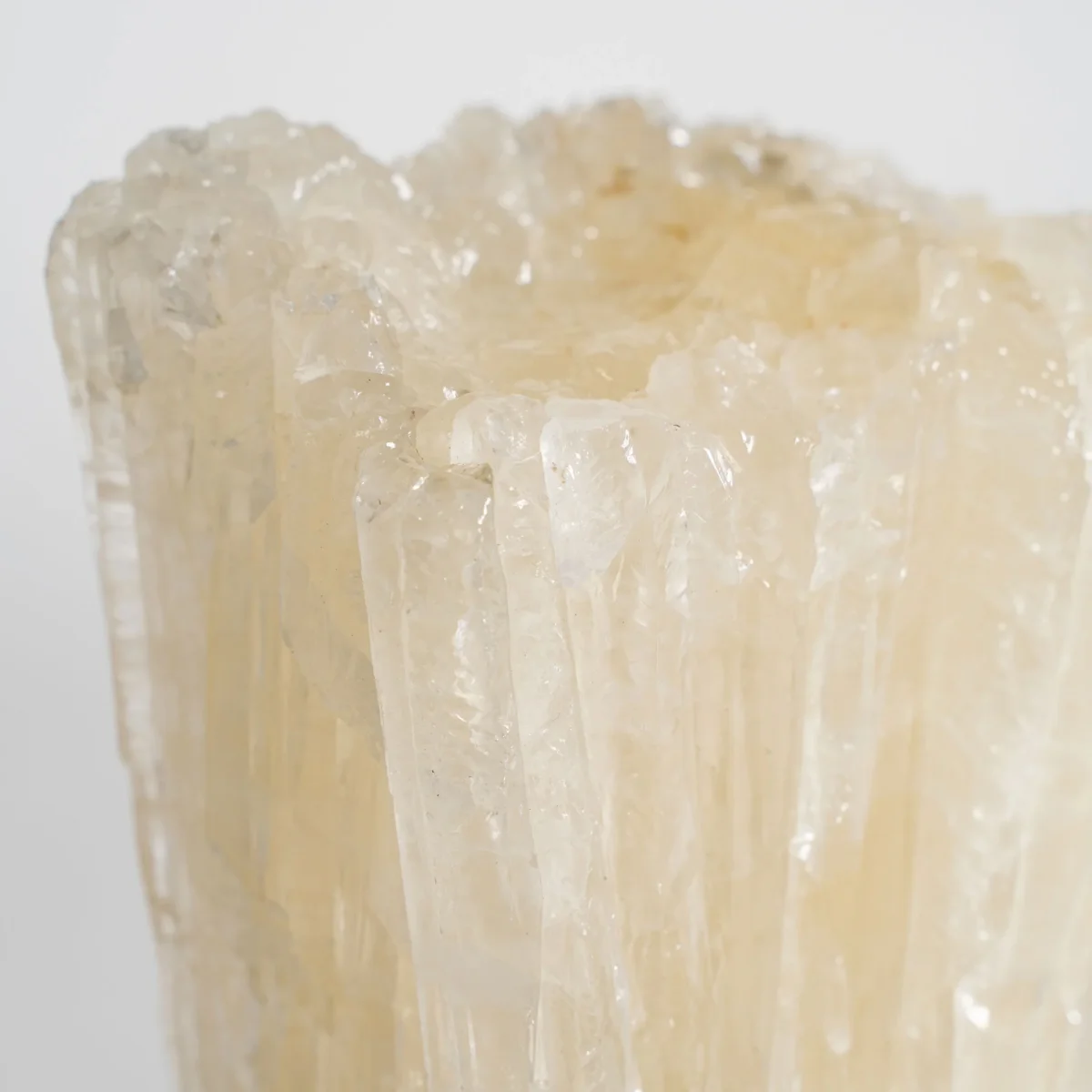 Esta figura decorativa en cristal color marfil evoca una elegancia sutil, aportando un toque de distinción a cualquier ambiente. Sus suaves líneas y delicada forma atraen la luz, creando un juego de reflejos que invita a la contemplación. Cada pieza es única, con variaciones naturales que celebran la artesanía excepcional. Ideal para realzar estanterías o mesas, es una declaración de buen gusto y sofisticación en su hogar.
