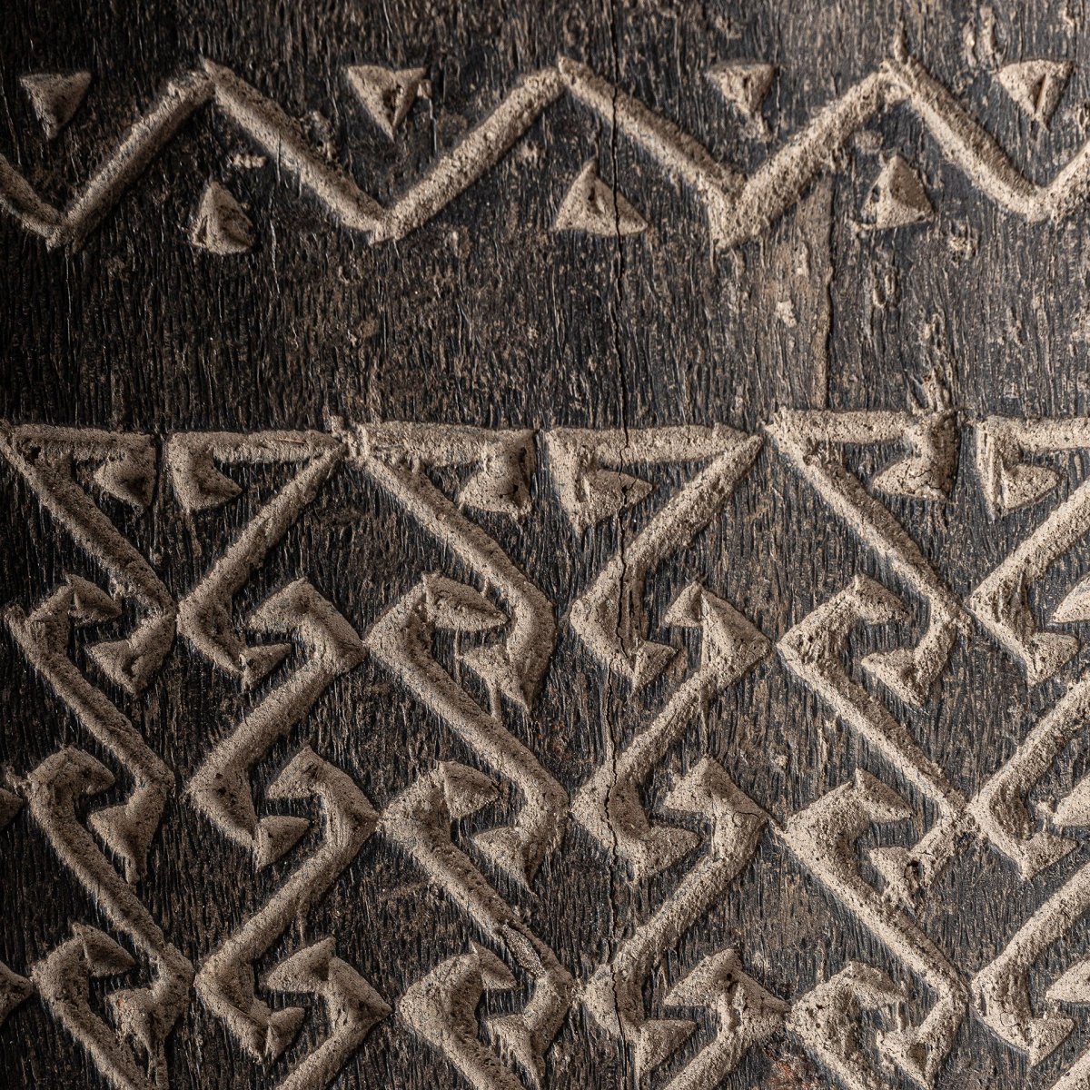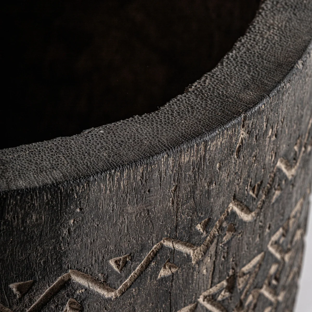 Jarrón, en color tonos en marrón. Fabricado en madera palma.