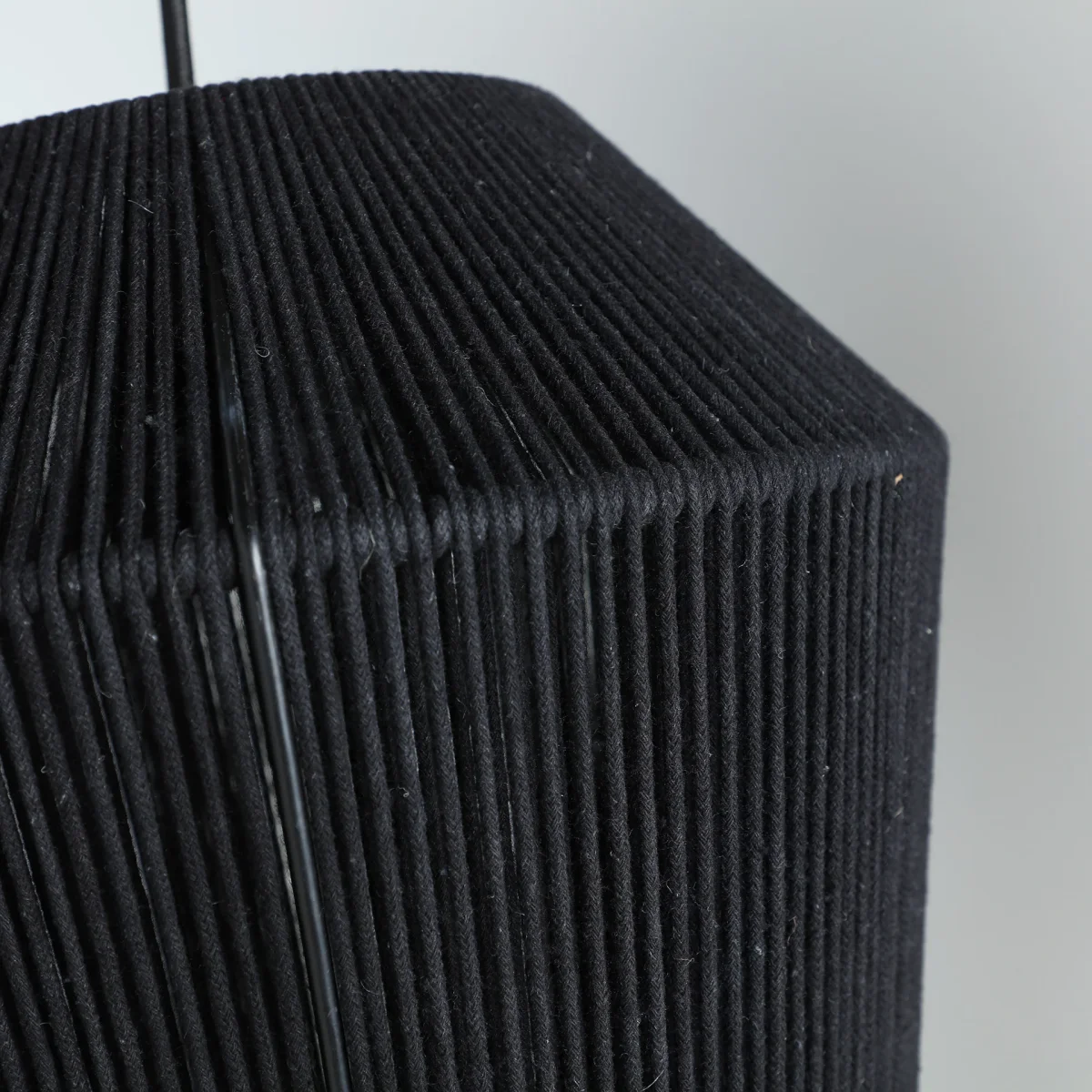 Lámpara de colgar Sayil de estilo boho, fabricado en algodón en color negro, combinado con hierro en color negro.