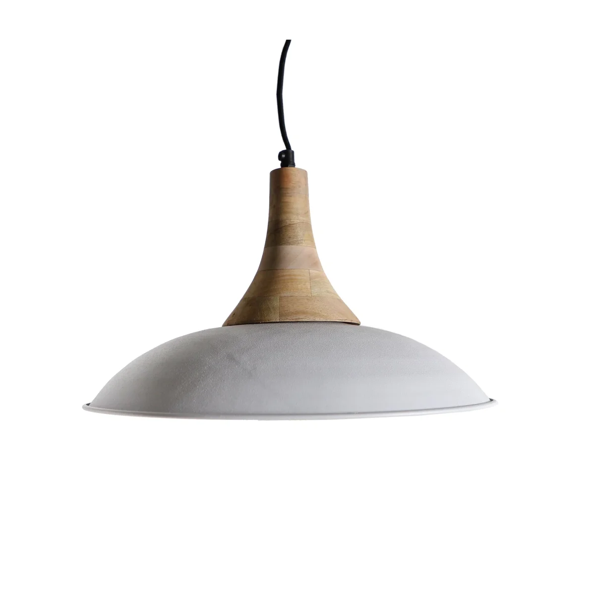 Lámpara De Colgar Redonda Beck, En Color Blanco/Natural, De Estilo Industrial. Fabricado En Hierro, Combinado Con Madera De Mango.
