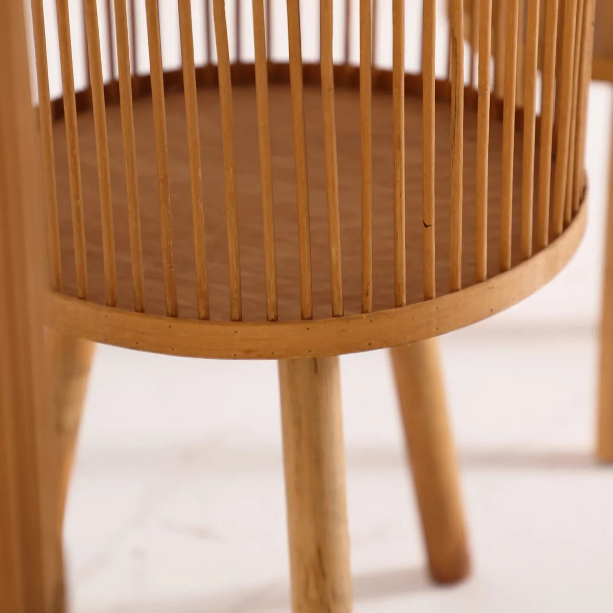 Macetero J/3 Redonda Arteaga, En Color Marrón, De Estilo Boho. Fabricado En Bambú. Producto Desmontable.