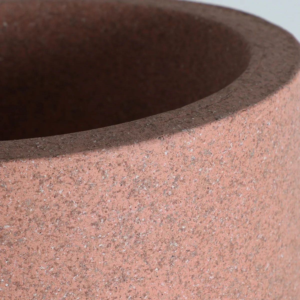 Macetero, fabricado en poliresina en color marrón.