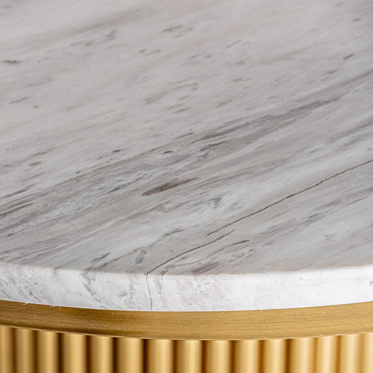 Mesa Bar Redonda Dolny, En Color Blanco/Oro, De Estilo Art Deco. Fabricado En Mármol, Combinado Con Acero. Producto Desmontable.