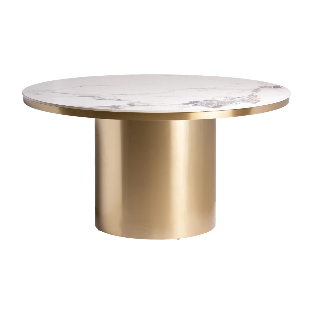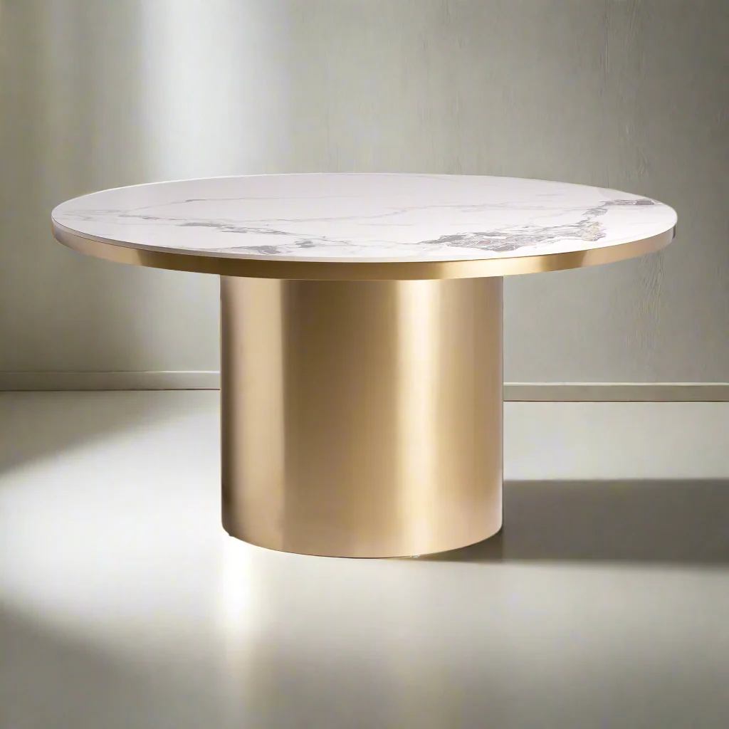 Mesa Comedor Astach, En Color Blanco/Oro, De Estilo Art Deco. Fabricado En Porcelánico, Combinado Con Acero. Producto Desmontable.