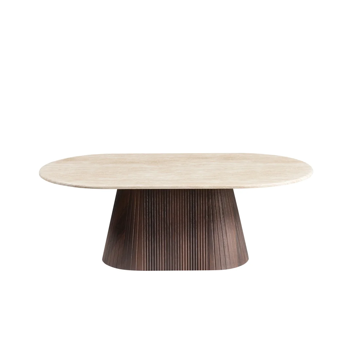 Mesa de centro, en color marrón/beige. Fabricado en madera dm, combinado con mármol sintético.