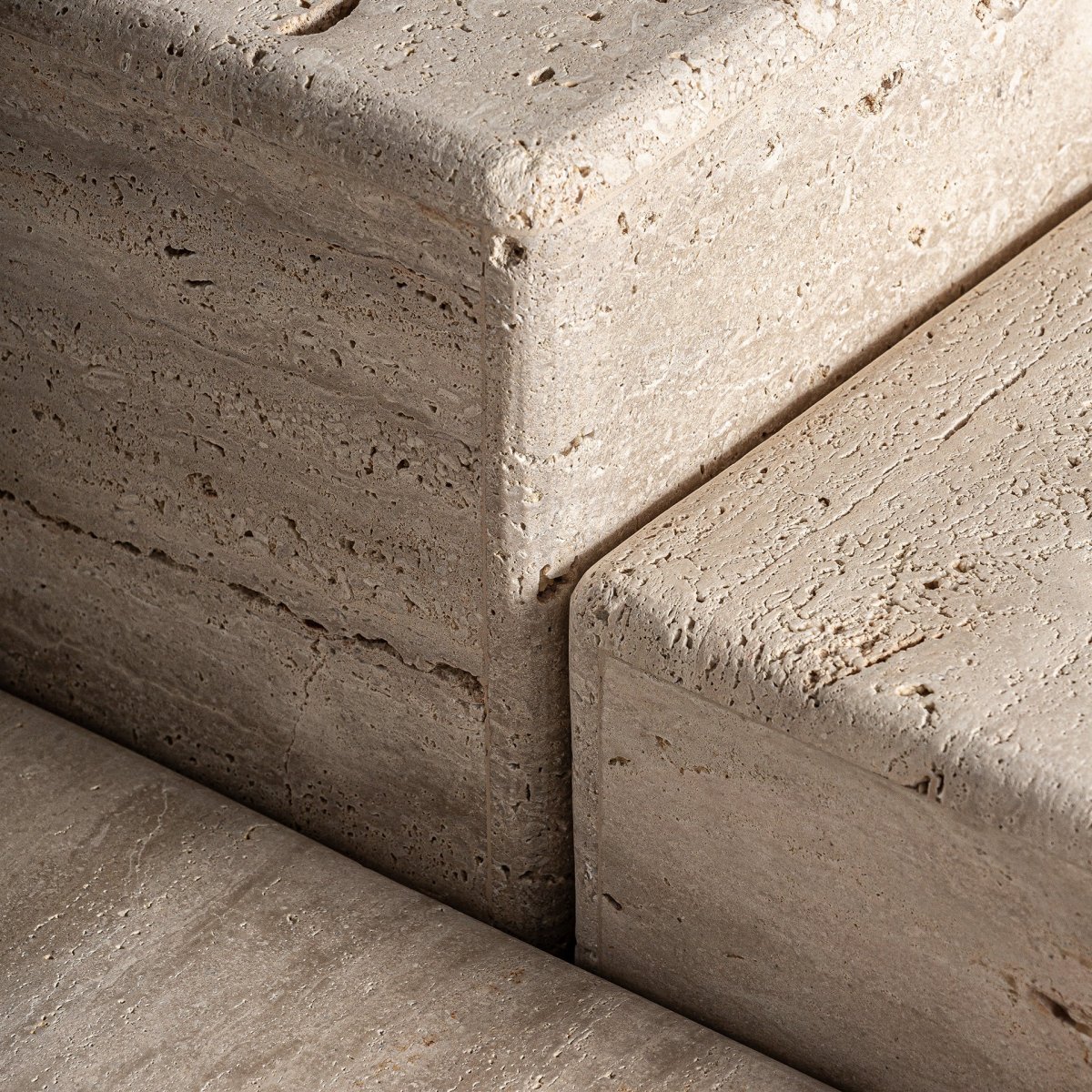 • Su construcción en travertino asegura durabilidad y un acabado exclusivo que resalta en cualquier sala de estar.