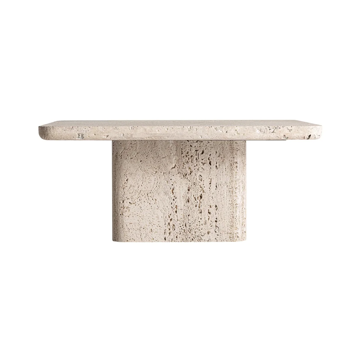 Mesa De Centro Theuville, En Color Beige, De Estilo Art Deco. Fabricado En Travertino.