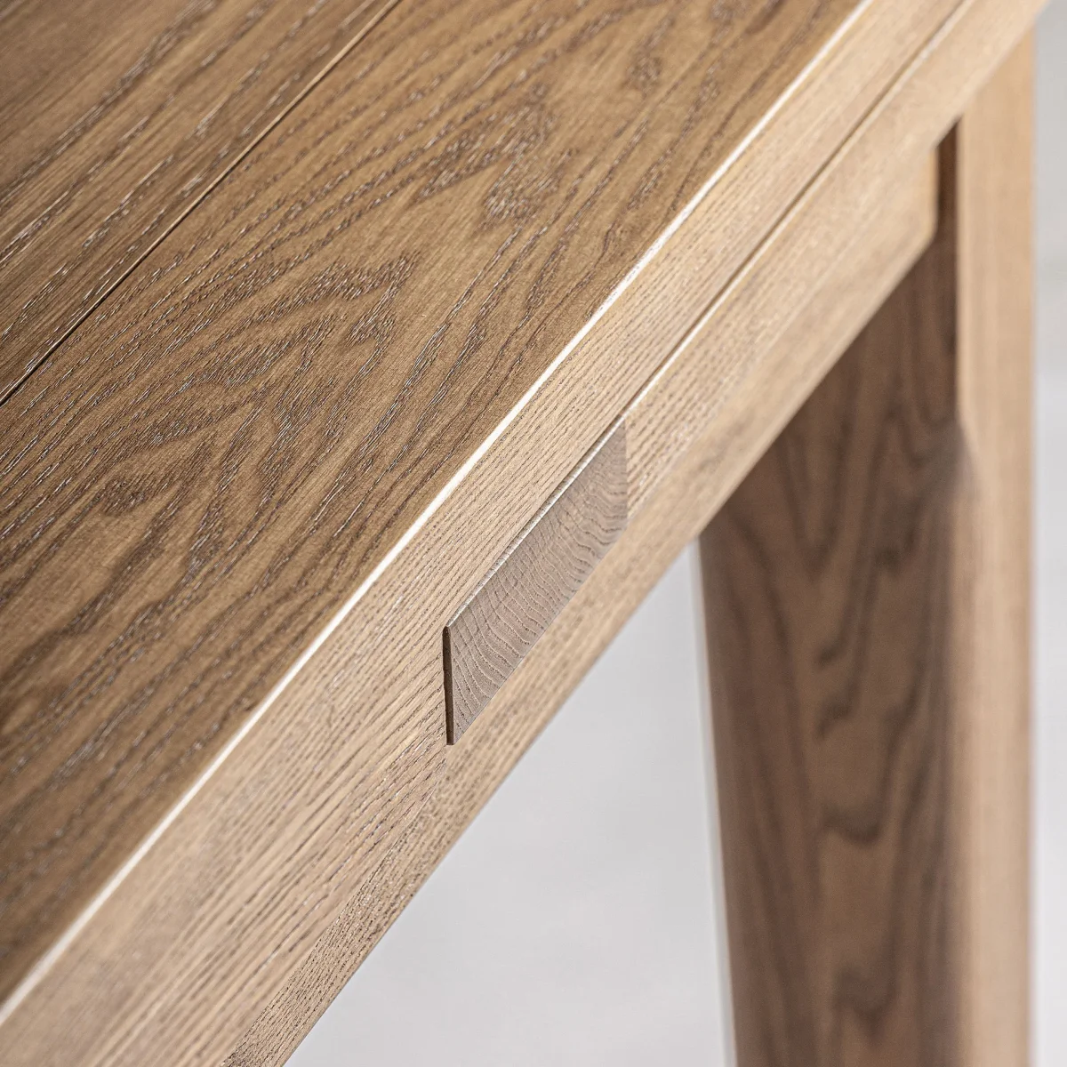 Mesa extensible heikant, de estilo clásico. Fabricado en madera de fresno, en color marrón claro, combinado con chapa de madera.