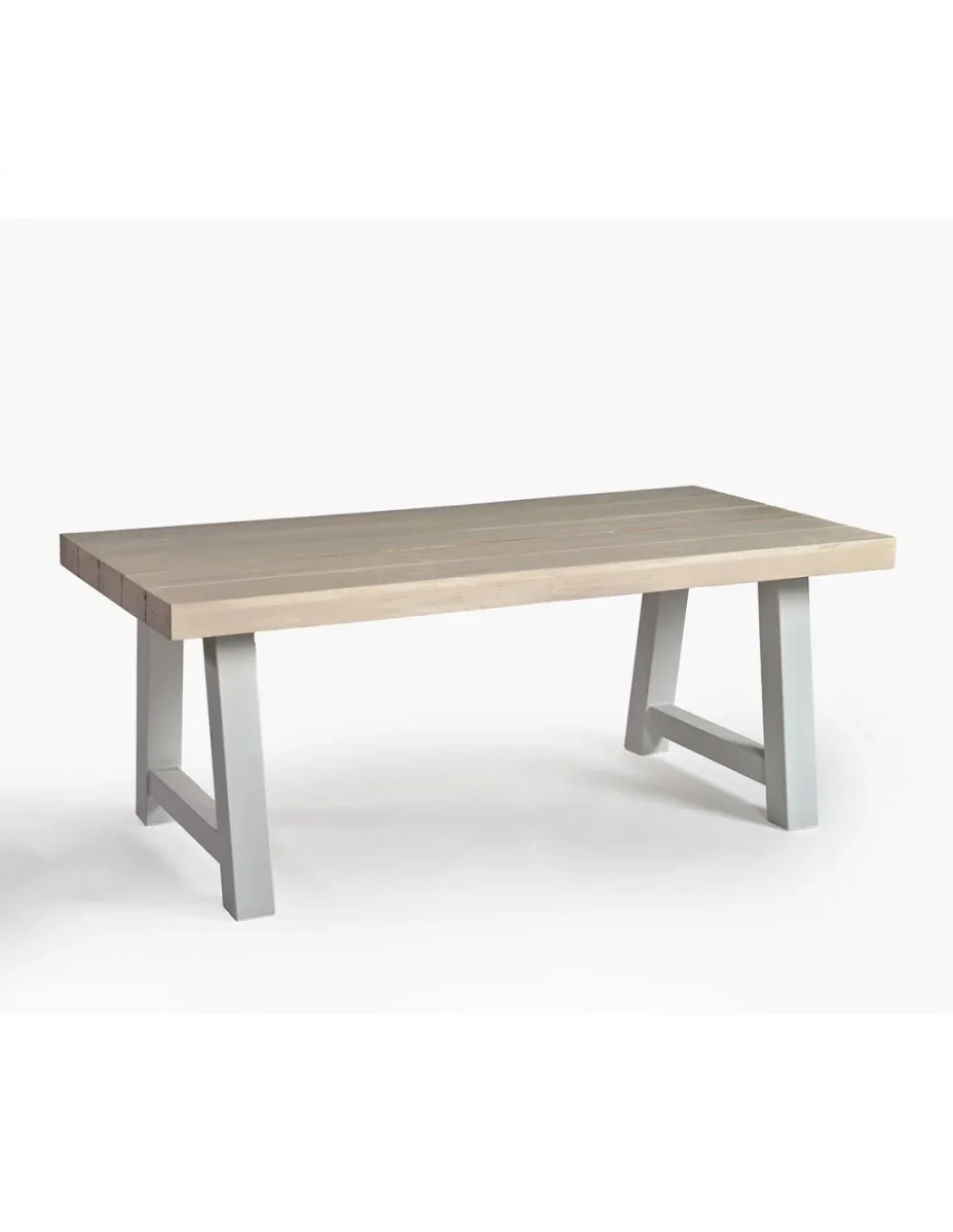Mesa rectangular para exterior de teca blanqueada y aluminio: Mesa con sobre de madera de teca blanqueada y patas de aluminio color piedra, perfecta para combinar con sillas de comedor para exterior. Dimensiones: 195x95x76