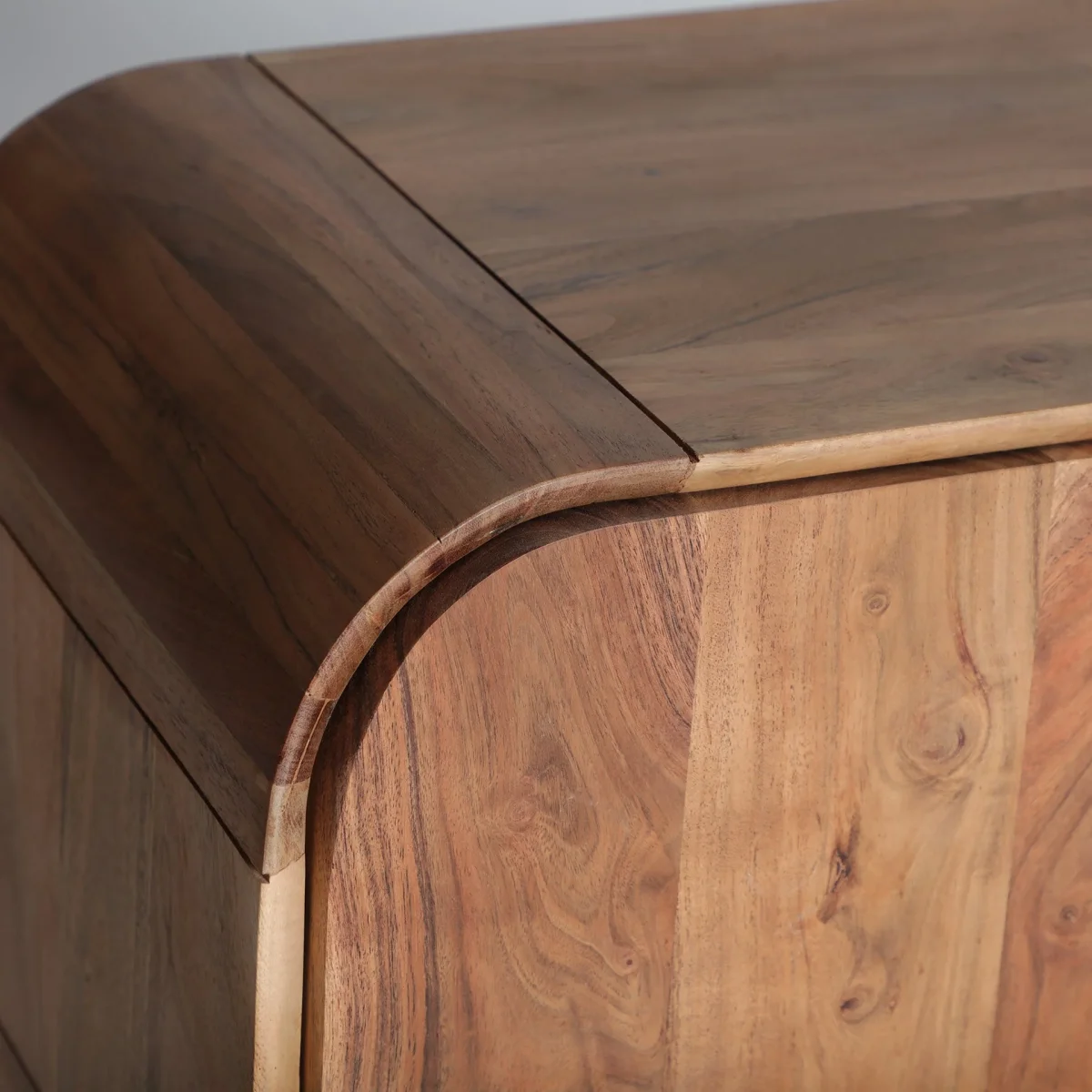 Mesita De Noche Blesle, En Color Marrón, De Estilo Contemporáneo. Fabricado En Madera De Acacia, Combinado Con Madera Dm. Producto Desmontable.
