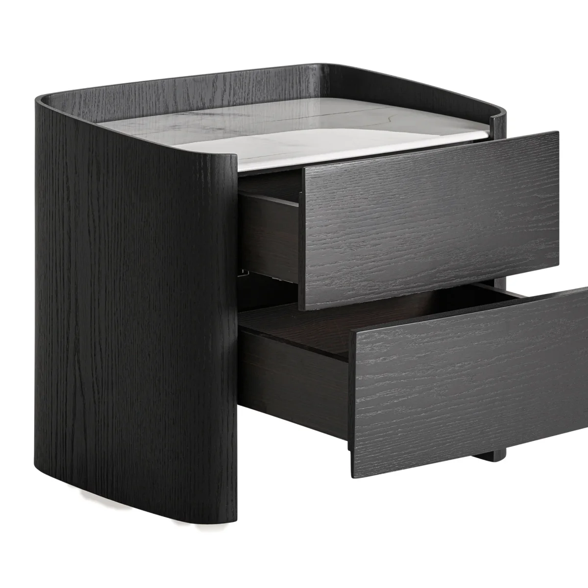 Imagina la sofisticación que la mesita de noche Haesa aporta a tu dormitorio, fusionando estilo y funcionalidad en un solo diseño. La mesita de noche Haesa es un ejemplo sublime de la artesanía contemporánea, elaborada con madera contrachapada de alta calidad y una elegante chapa de roble. Su superficie de piedra sinterizada en color negro añade un toque de modernidad y resistencia, perfecta para cualquier espacio.