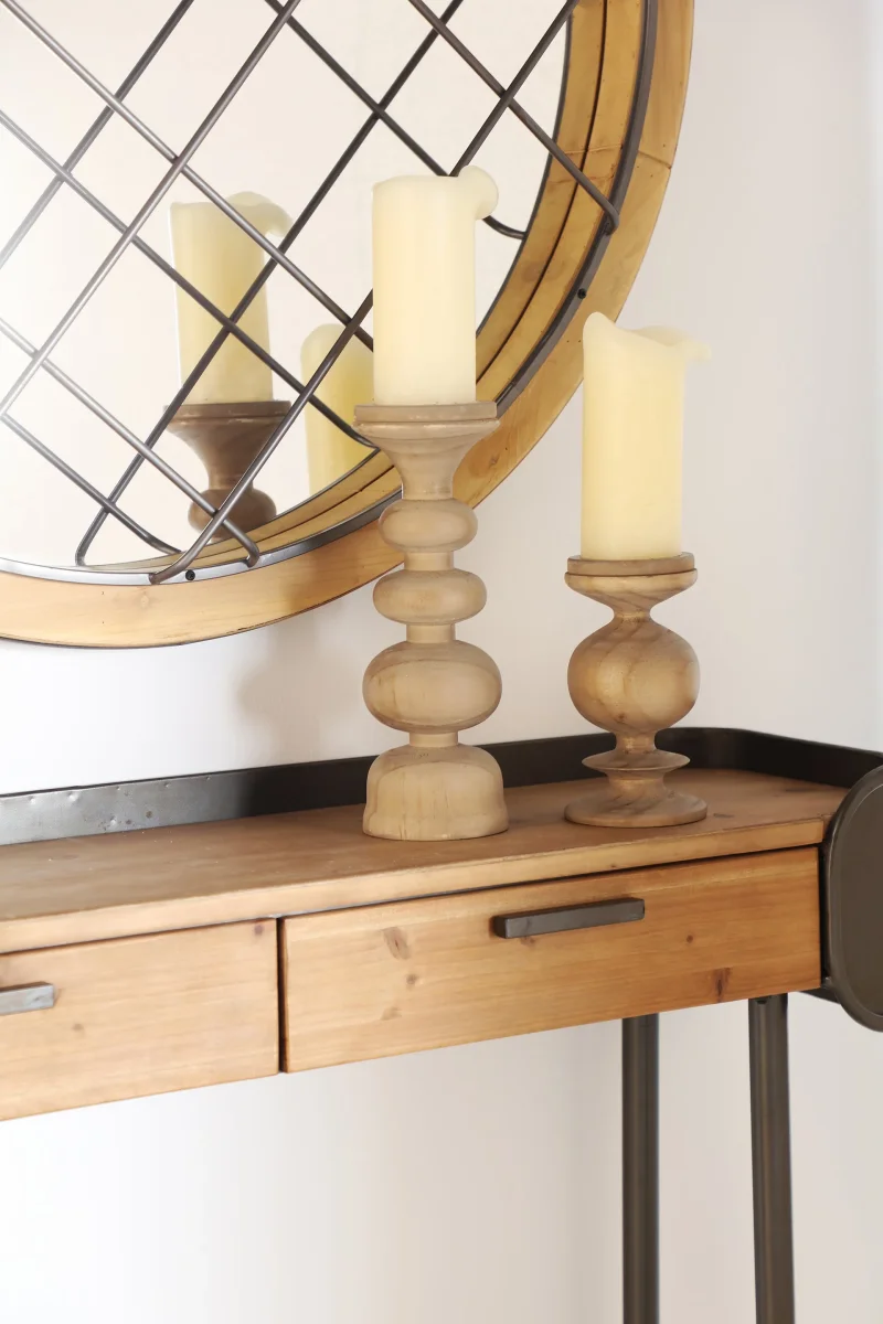 Portavela Fellih, En Color Marrón, De Estilo Colonial. Fabricado En Madera De Pino, Combinado Con Hierro.