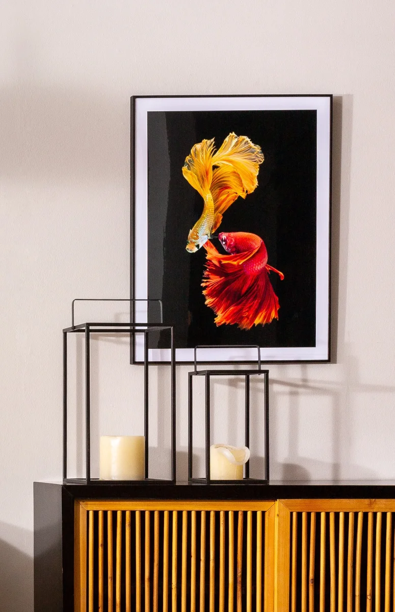 Portavela J/2 Cuadrado Cailar, En Color Negro, De Estilo Industrial. Fabricado En Hierro.