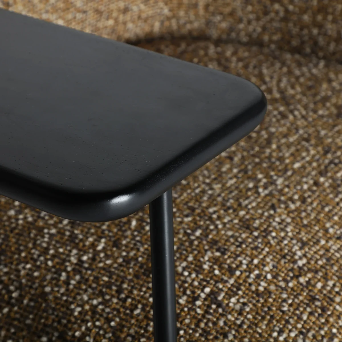 Sillón Comporta de estilo contemporáneo, fabricado en poliéster en color tonos en verde con acabado jaspeado, combinado con hierro en color negro y madera de fresno en color negra.