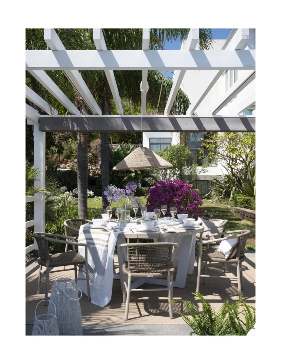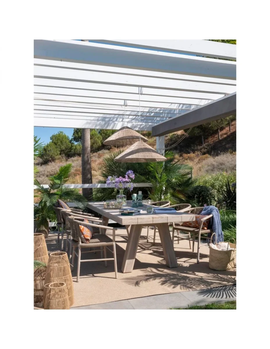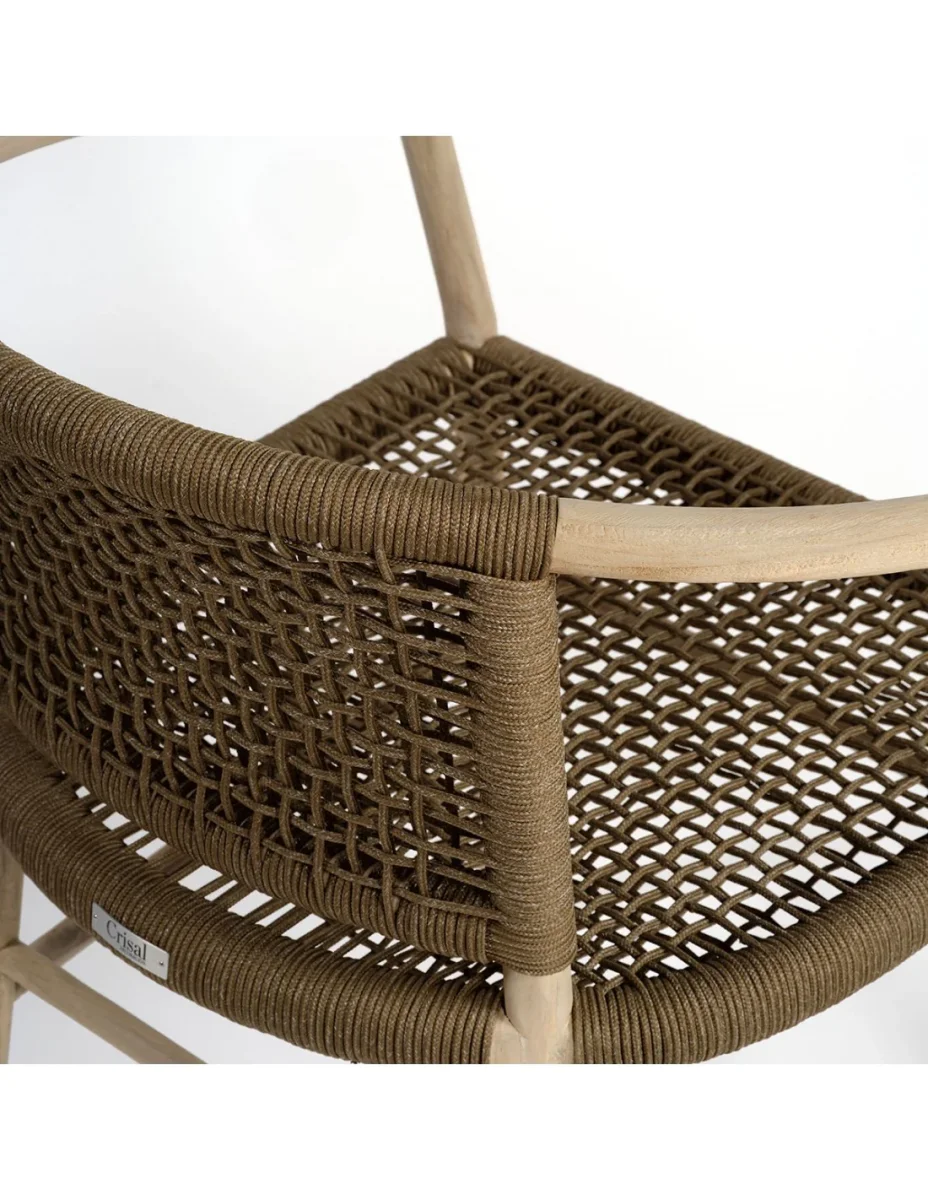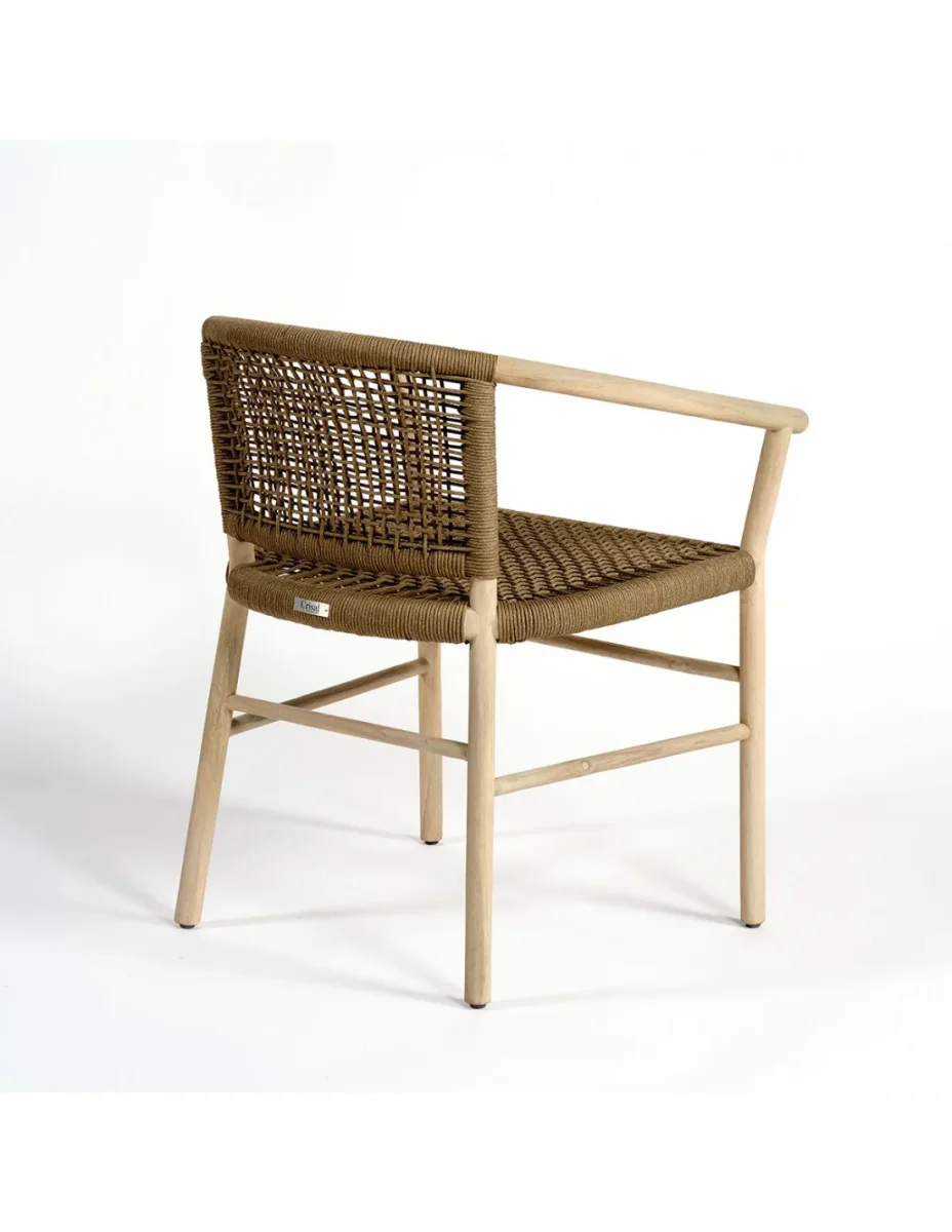 Silla para exterior de cuerda sintética y madera de teca: Fabricada en madera de teca blanqueada y cuerda sintética camel. Apta para uso en porches o jardines. Dimensiones: 62x60x75