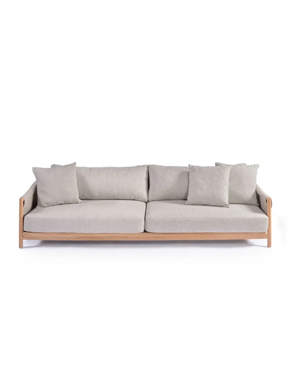 Sofá de Cuerda y Teca: Apto para uso en porche o terraza, disponible en otras medidas. Dimensiones: 260x97x75.5