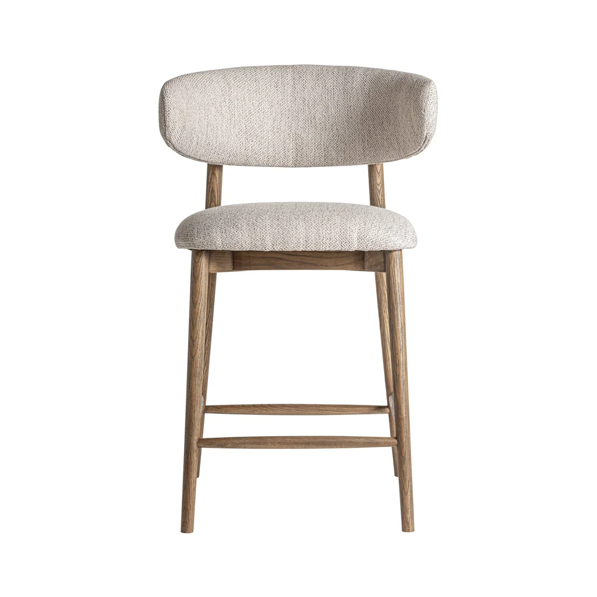 Taburete Laires, En Color Marrón/Beige, De Estilo Colonial. Fabricado En Madera De Fresno, Combinado Con Poliéster.
