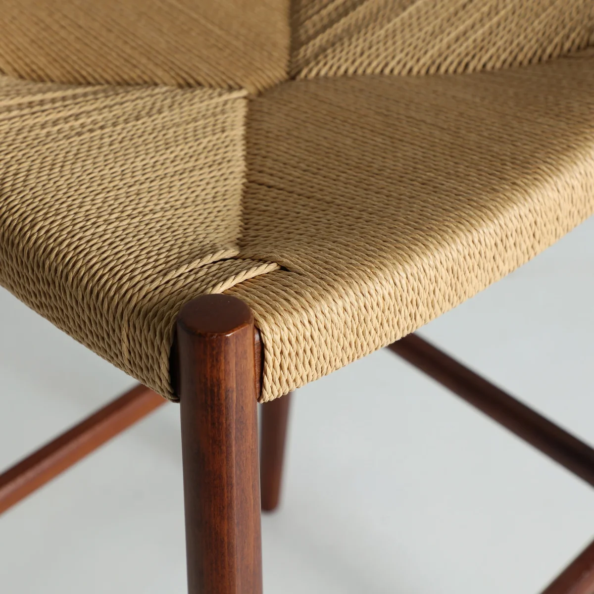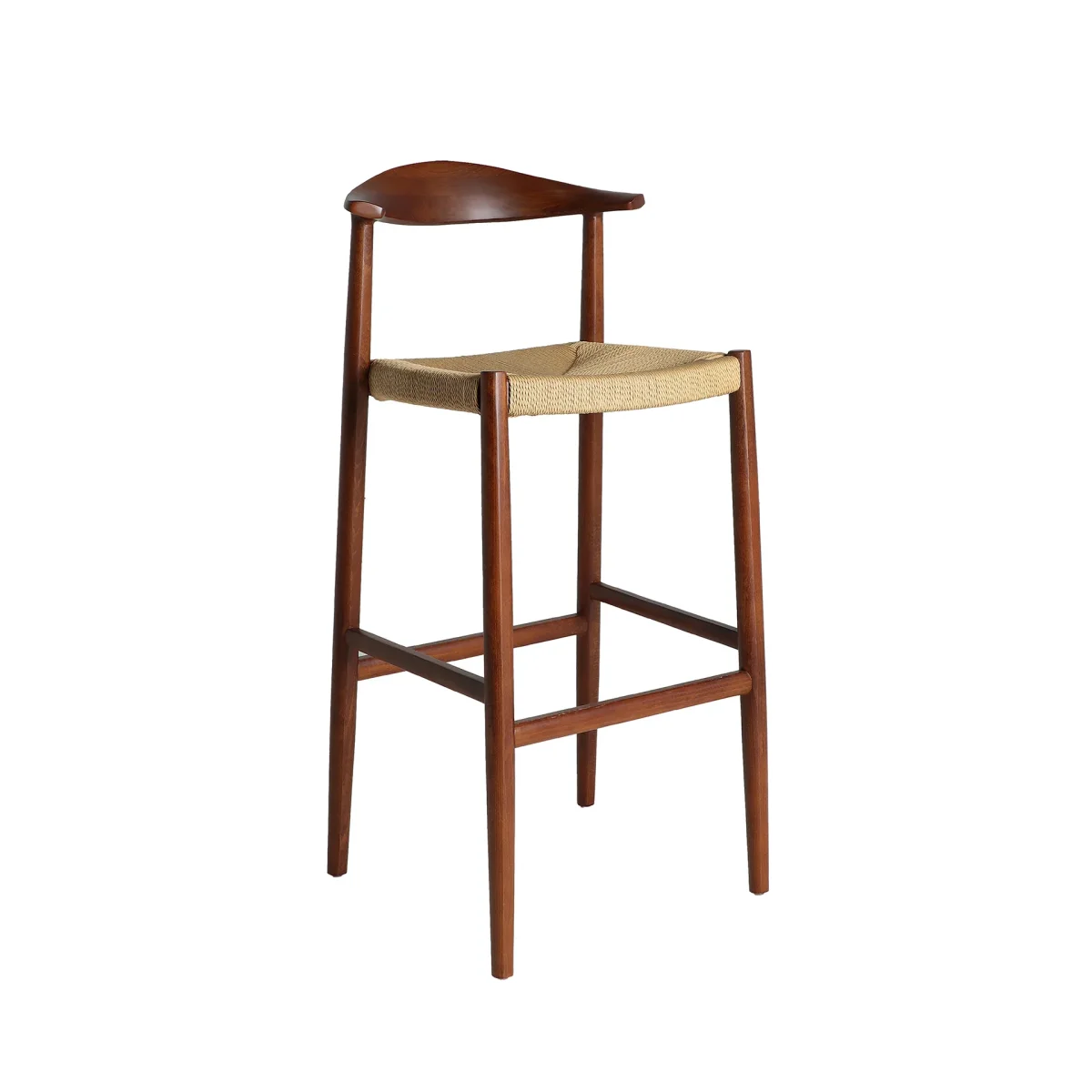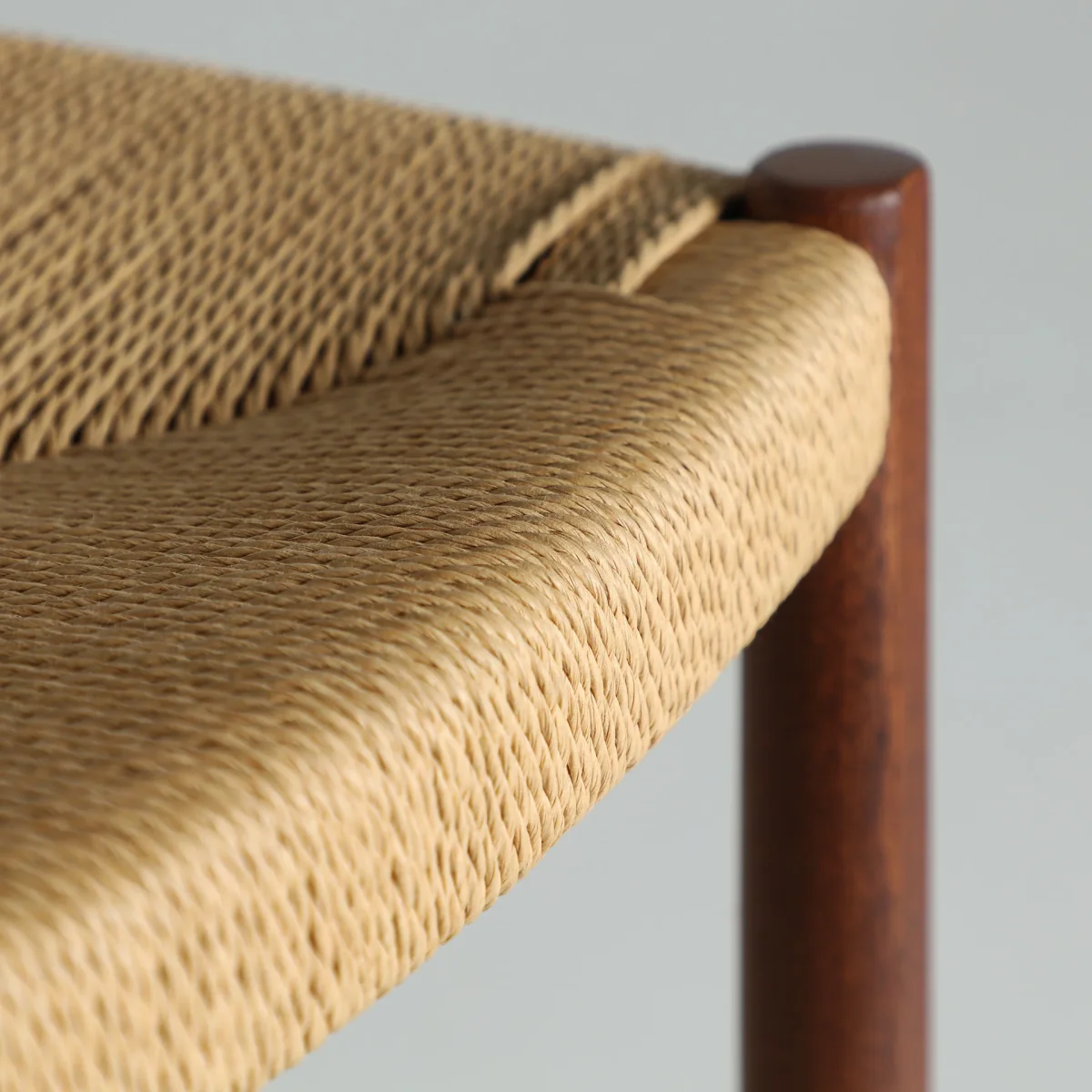 Taburete Zelhem de estilo nórdico, fabricado en madera de haya en color marrón, combinado con cuerda en color beige.