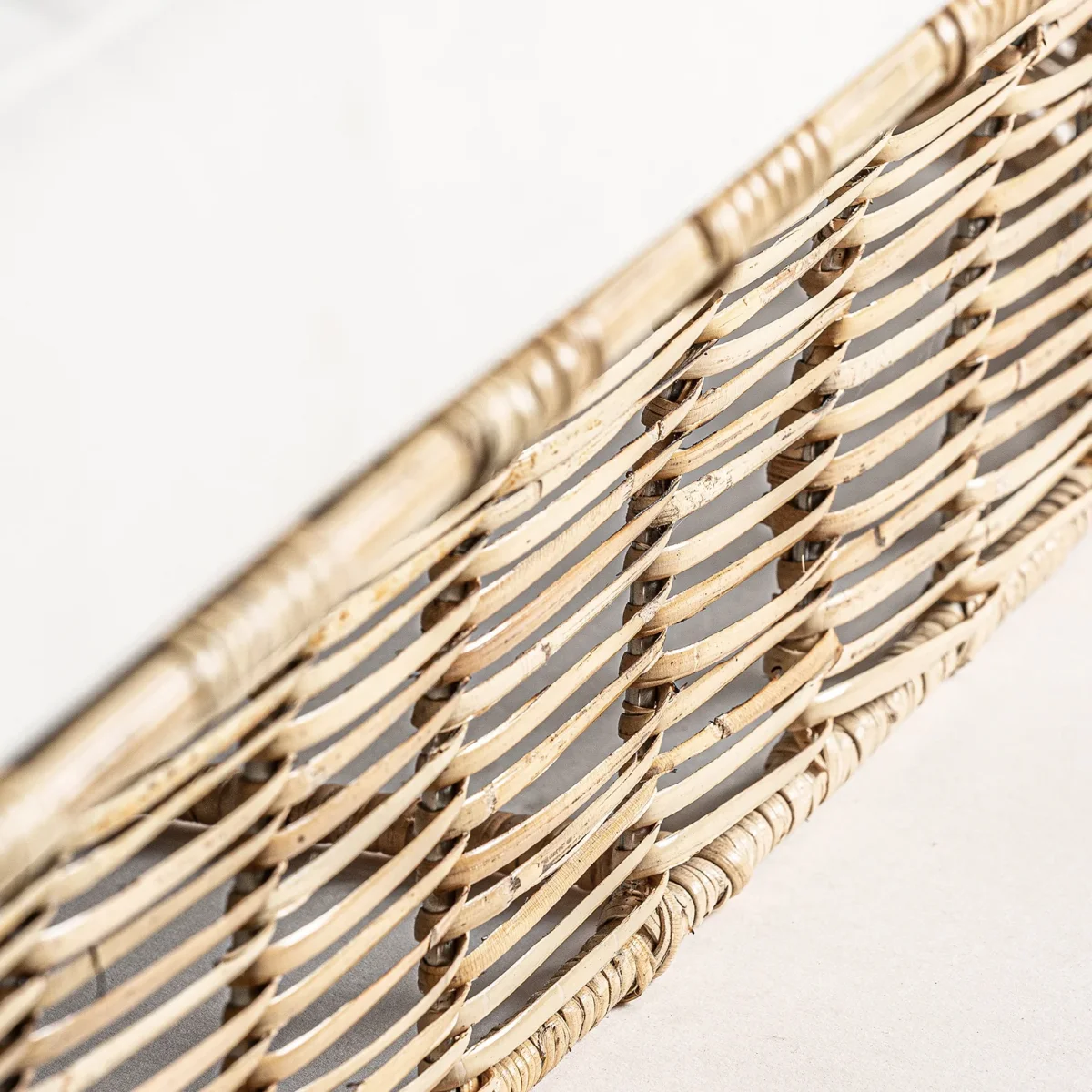 Esta tumbona de ratán en un cálido marrón claro evoca momentos de serenidad al aire libre. Su diseño elegante y proporciones equilibradas invitan al descanso, convirtiéndose en el refugio perfecto para disfrutar de un buen libro o una conversación amena. Elaborada con artesanía excepcional, cada detalle resalta la autenticidad del material, mientras que su presencia elegante realza el ambiente de cualquier espacio. Una pieza fundamental para quienes aprecian la sofisticación y la comodidad en su hogar.