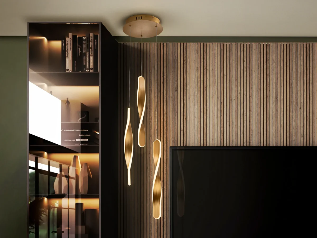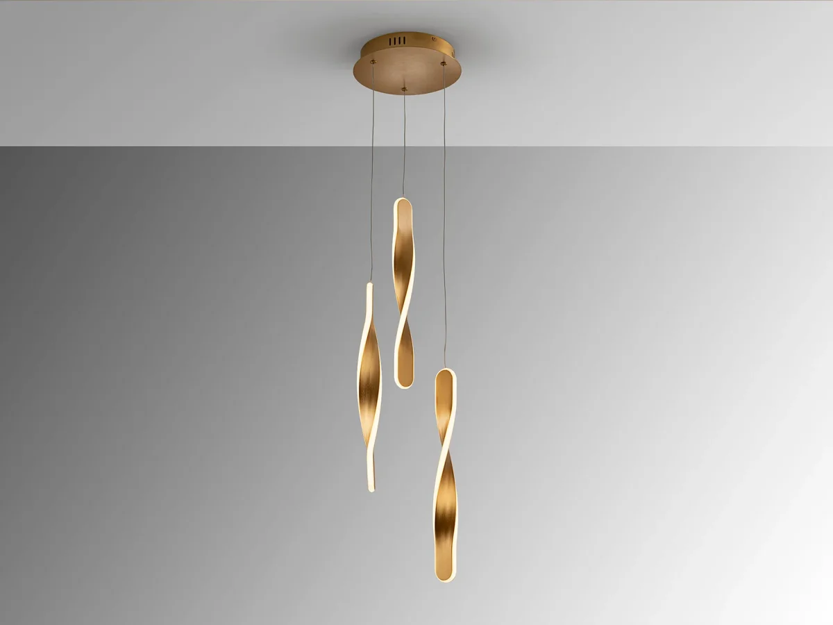 Lámpara realizada en metal acabado oro cepillado. Difusor de silicona opal. 30W, 2100 lm, 3000k. DIMABLE.