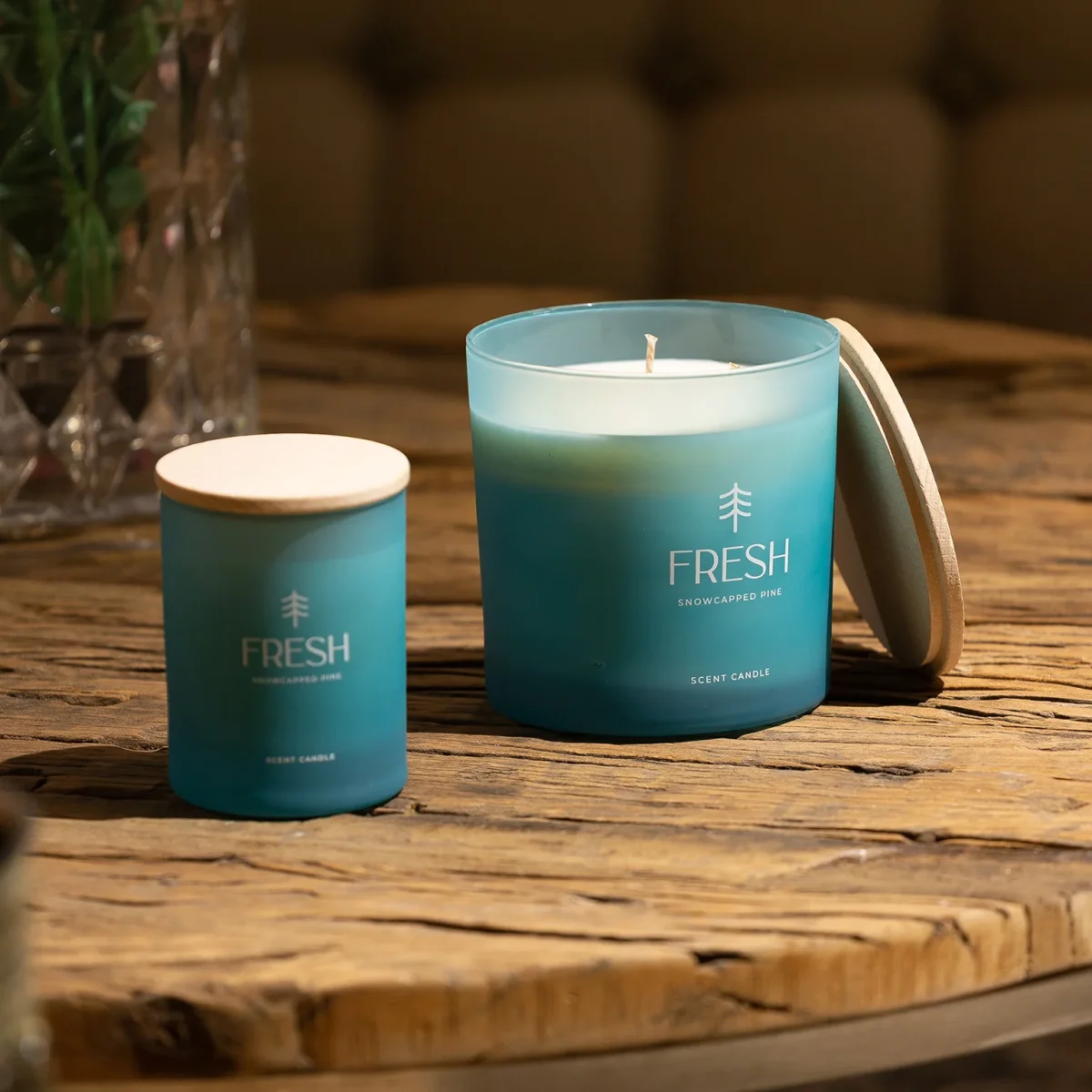 Vela Fresh, En Color Azul, De Estilo Shabby Chic. Fabricado En Cera, Combinado Con Vidrio. 92% De Cera Natural, 8% Fresco De Pino Nevado.
